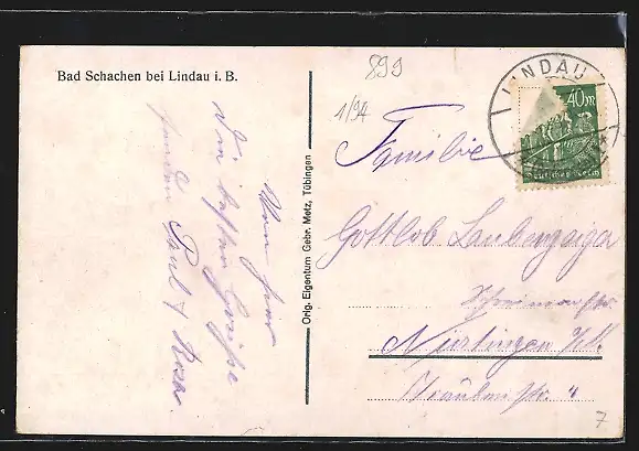alte Ansichtskarte, gelaufen 1923, Eckknick li. oben, guter Zustand