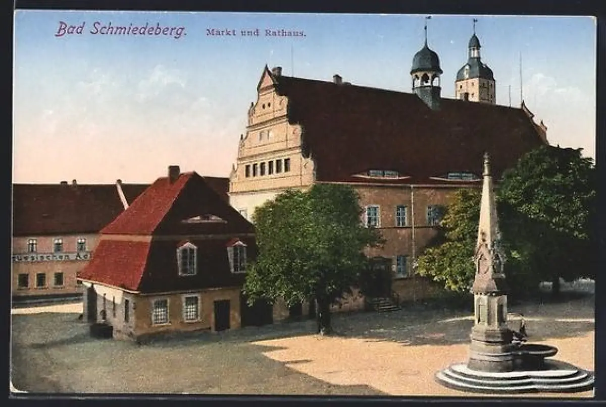 AK Bad Schmiedeberg, Markt, Rathaus, Brunnen