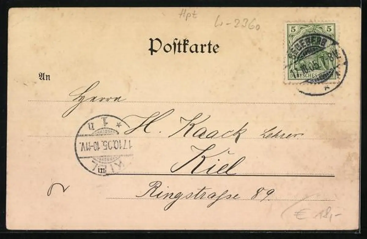 alte Ansichtskarte, gelaufen 1905, Eckknick re. oben, guter Zustand