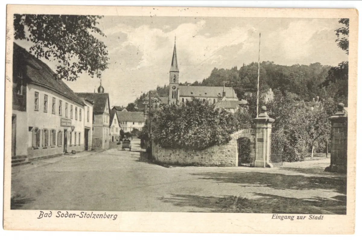 Ansichtskarte Bad Soden - Stolzenberg Eingang zur Stadt Erhaltung I-II postalisch gelaufen, gestempelt: Stolzenberg, 21.3.22 Verlag: Carl Zehner, Bad Soden-Stolzenberg Im Inland erfolgt die Zusendung versandkostenfrei Auslandsversand erfolgt über