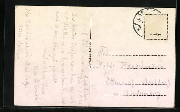 alte Ansichtskarte, gelaufen, Briefmarke entfernt, guter Zustand