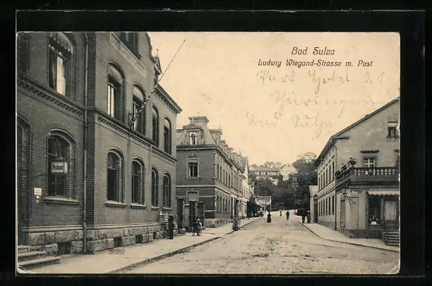 AK Bad Sulza, Ludwig Wiegand-Strasse mit Post