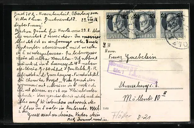 gelaufen 1916, guter Zustand