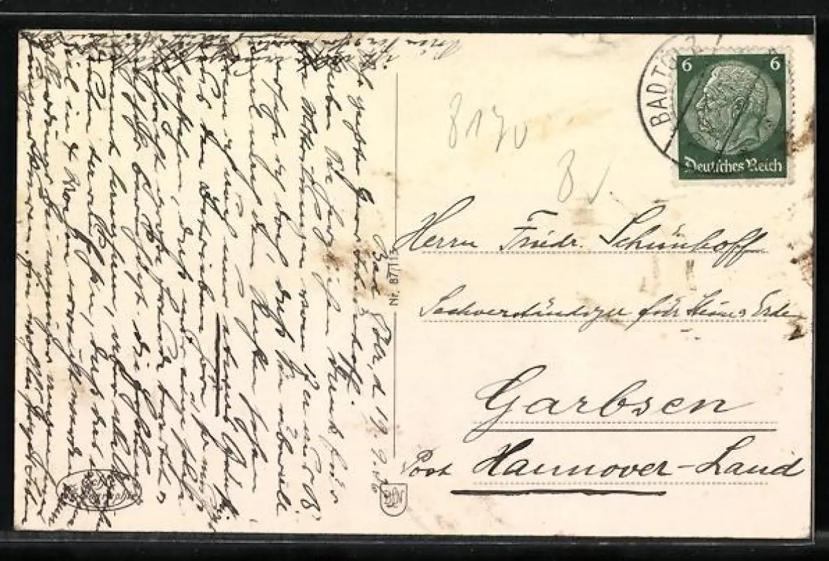 alte Ansichtskarte, gelaufen 1936, Eckknick oben rechts, Abriebspur oben rechts, guter Zustand