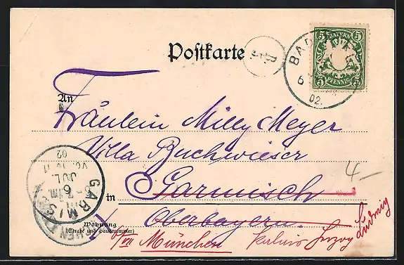 gelaufen 1902, Eckknick re. oben, guter Zustand