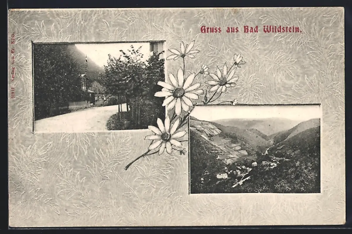 AK Bad Wildstein, Teilansicht, Ortspartie, Gänseblumen, Passepartout