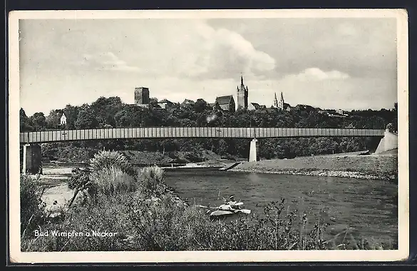 AK Bad Wimpfen a. Neckar, Uferpartie mit Brücke
