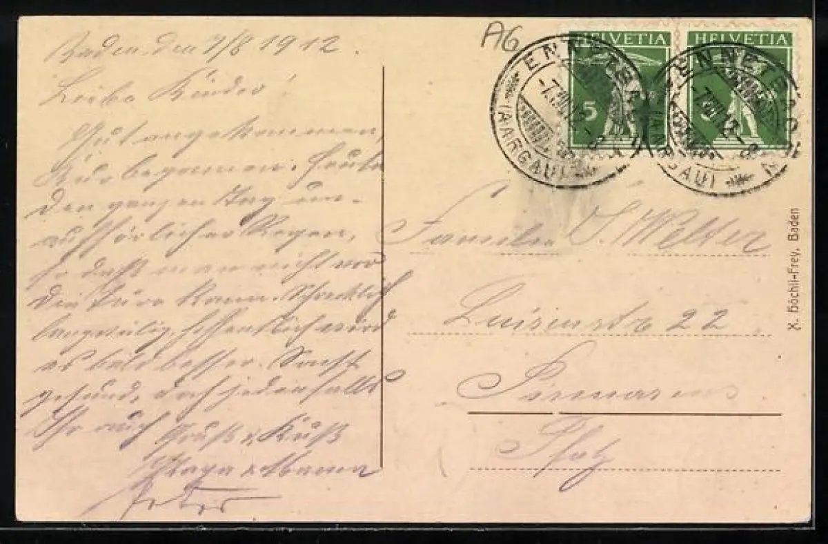 gelaufen 1912, guter Zustand