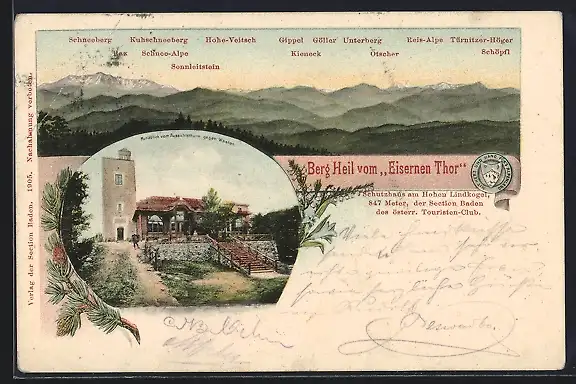 AK Baden, Aussichtsturm, Bergpanorama, Berg Heil vom Eisernen Thor