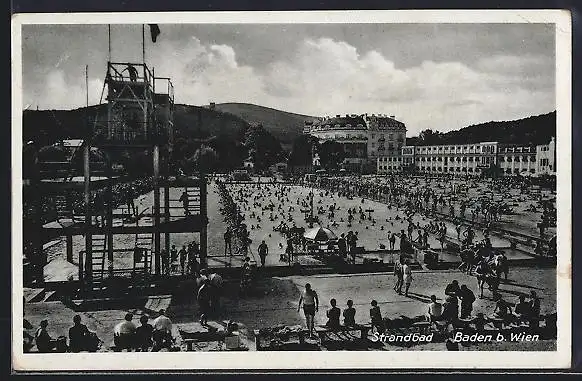 AK Baden, Badegäste vergnügen sich im Strandbad