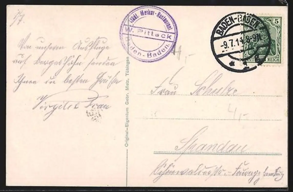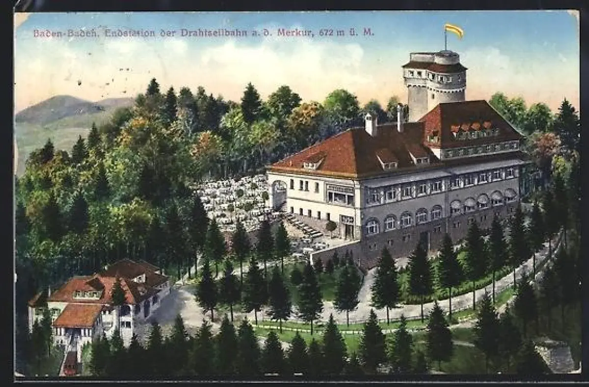 AK Baden-Baden, Endstation der Drahtseilbahn a. d. Merkur