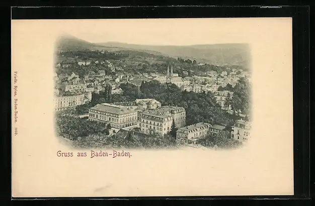 AK Baden-Baden, Teilansicht mit Kirche