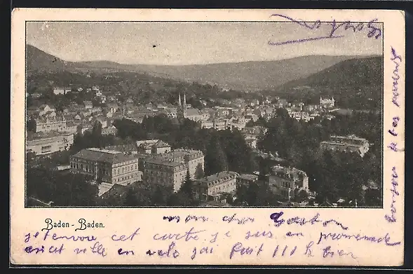 AK Baden-Baden, Totalansicht aus der Vogelschau