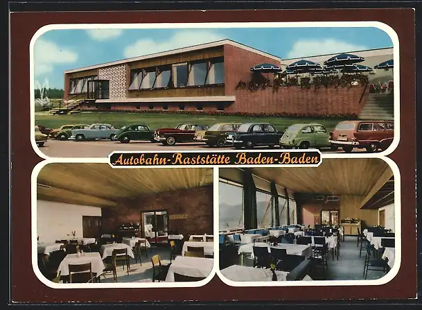 AK Baden-Baden, die Autobahn-Raststätte, Innen- und Aussenansichten