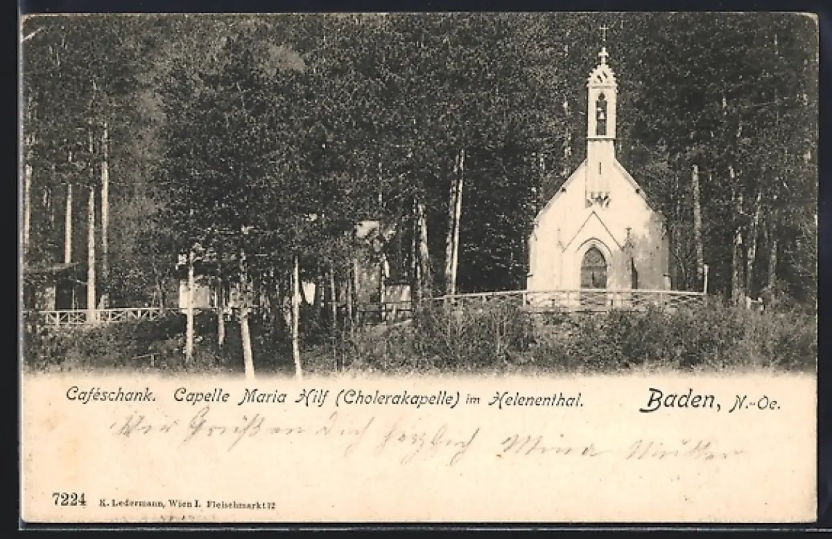 AK Baden, Caféschank, Capelle Maria Hilf im Helenenthal