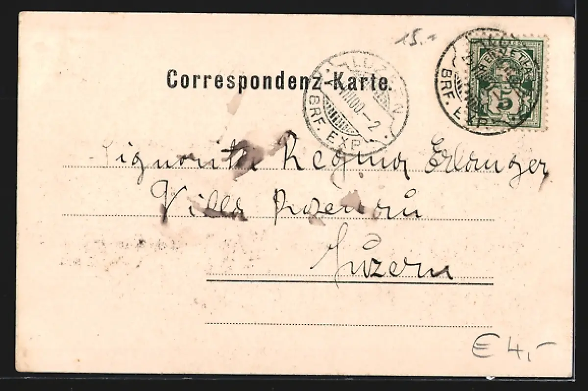 gelaufen 1900, minimaler Einriss li. oben, guter Zustand