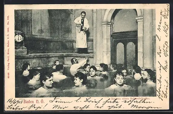 AK Baden /N. Ö., Inneres eines Schwefelbades