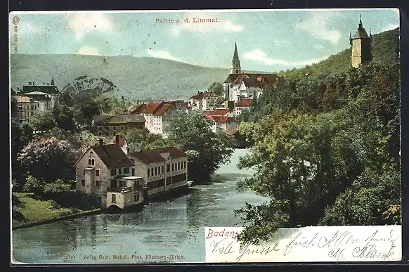 AK Baden, Partie an der Limmat, Mühle, um 1900