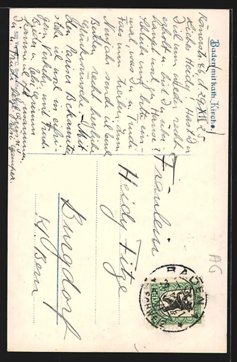 AK Baden, Teilansicht mit kath. Kirche