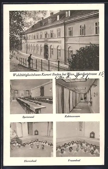 AK Baden, Wohltätigkeitshaus, Marchetstrasse, Innenansichten Speisesaal und Kabinenraum