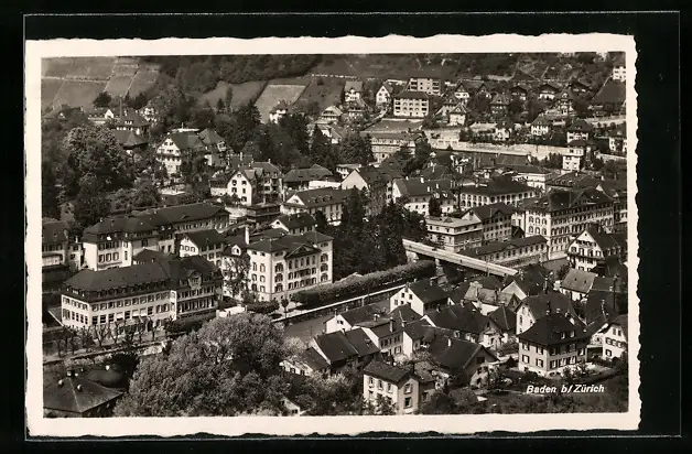 AK Baden b. Zürich, Ortspartie aus der Vogelschau