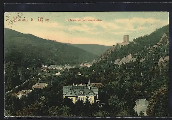 AK Baden bei Wien, Helenenthal, Ortsansicht mit Rauhenstein