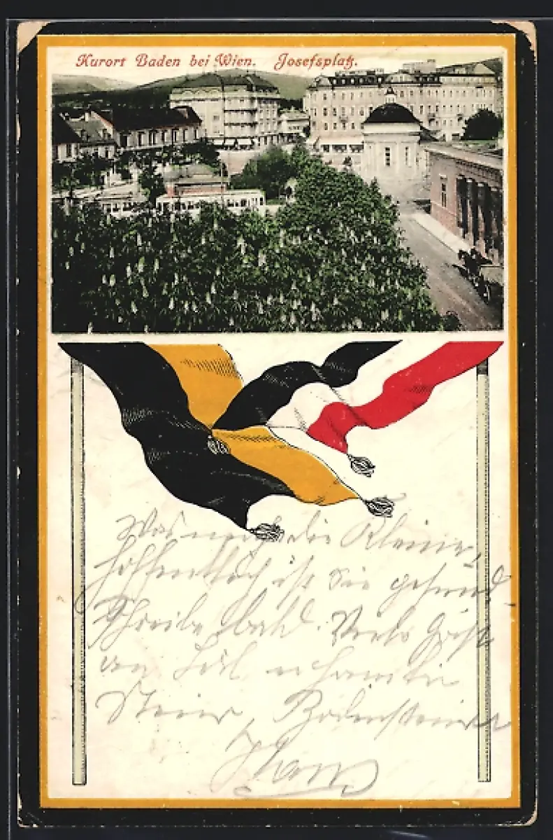AK Baden bei Wien, Josefsplatz, Fahnen, Passepartout