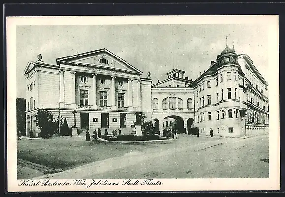 AK Baden bei Wien, Jubiläums Stadt-Theater mit Denkmal