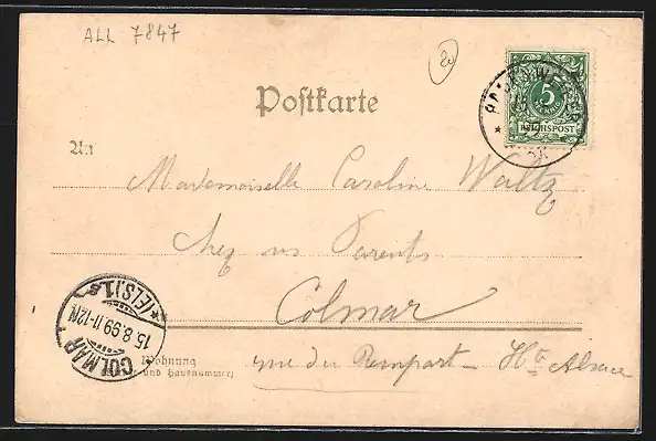 alte Ansichtskarte, gelaufen 1899, guter Zustand