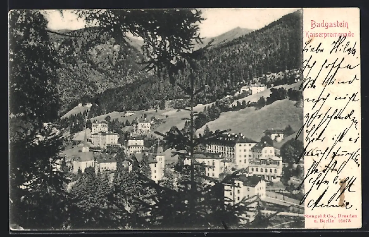 AK Badgastein, Ortspartie mit Kaiserpromenade