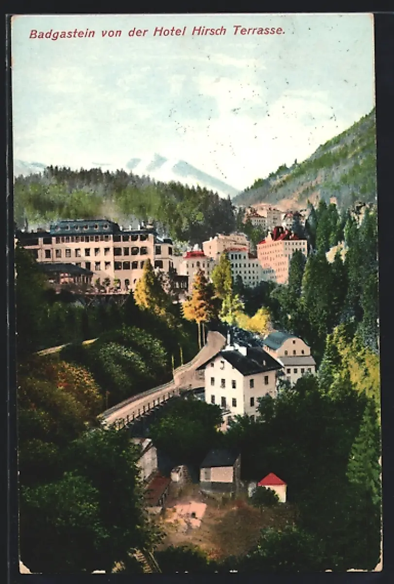 AK Badgastein, Strassenpartie von der Hotel Hirsch-Terrasse