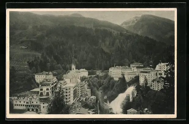 AK Badgastein, Teilansicht mit Kirche aus der Vogelschau