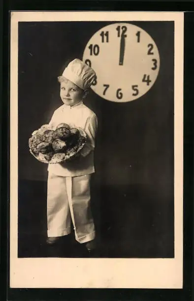 AK Bäckerjunge bringt in der Silvesternacht ein Tablett mit Krapfen