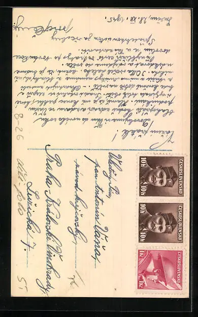 Personenbezogene Daten auf der Rückseite der Karte wurden durch blauen Textmarker unkenntlich gemacht. Die blauen Stellen sind auf die Vorderseite durchgeweicht und wirken sich negativ auf das Postkartenfoto aus