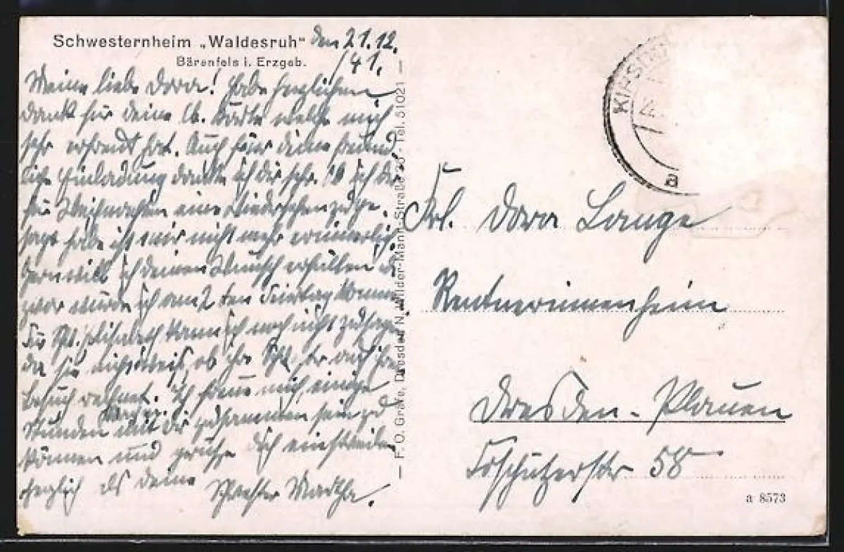 AK Bärenfels i. Erzgeb., Schwesternheim Waldesruh