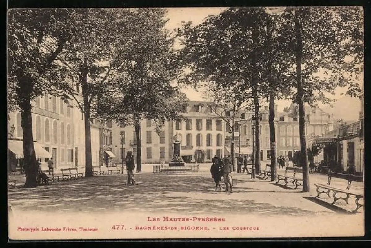 AK Bagnères-de-Bigorre /Hautes-Pyrénées, Les Coustous et la statue centrale