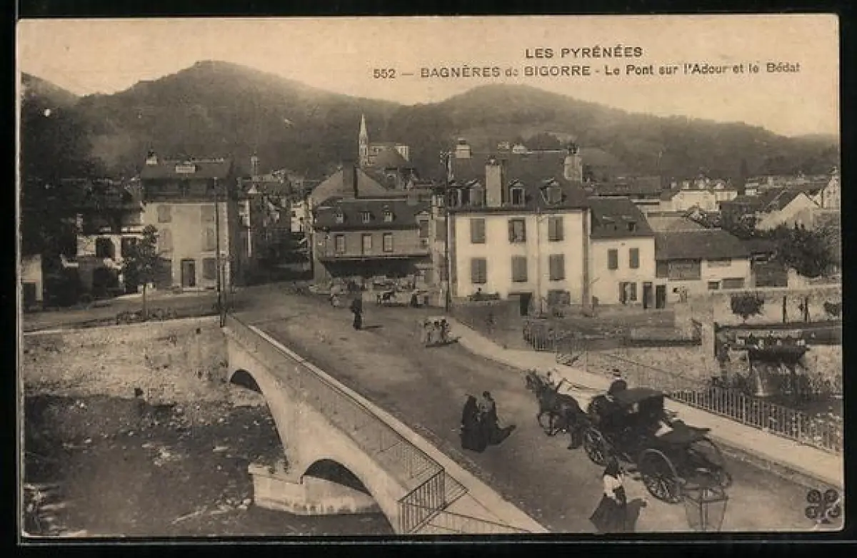 AK Bagnéres-de-Bigorre, le pont sur l'Adour et le Bédat