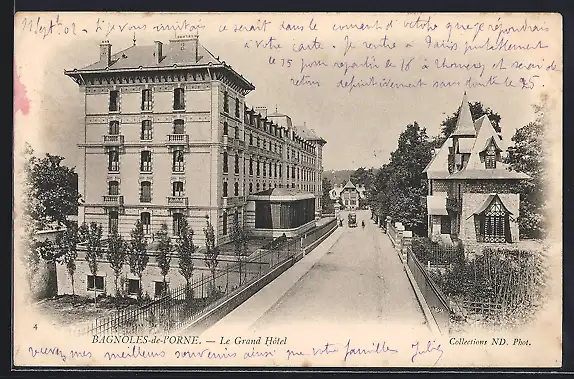 AK Bagnoles-de-l`Orne, Le Grand Hôtel et la rue adjacente
