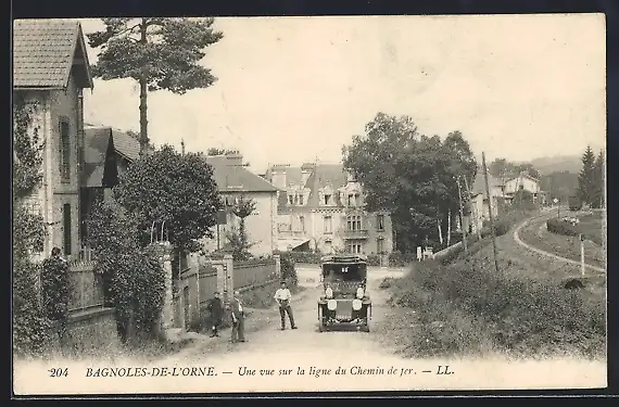 AK Bagnoles-de-l`Orne, Une vue sur la ligne du Chemin de fer