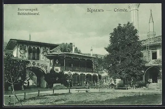 AK Bahktchissarai /Crimée, Strassenpartie mit bemalten Häusern