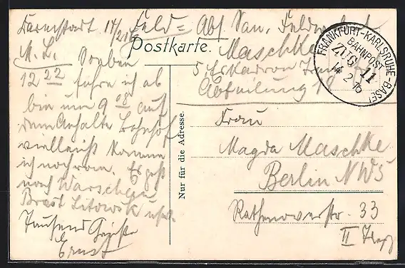 AK Bahnpoststempel Frankfurt-Karlsruhe-Basel, Zug 11