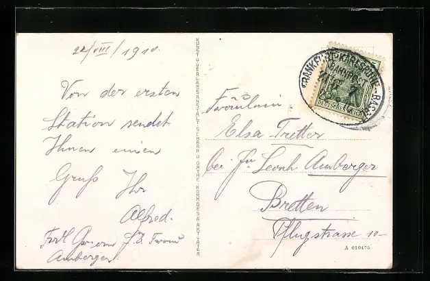 alte Ansichtskarte, gelaufen 1910, Eckknick unten re., guter Zustand