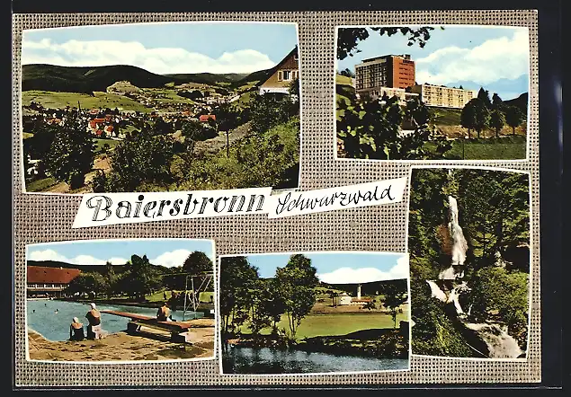AK Baiersbronn /Schwarzwald, Freibad, Ortsansicht, Wasserfall, Hochhaus