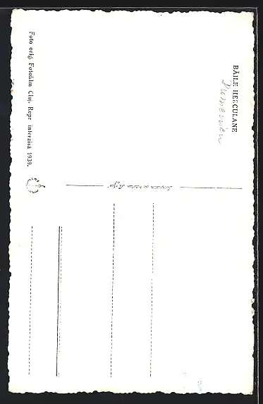 Personenbezogene Daten auf der Rückseite der Karte wurden durch blauen Textmarker unkenntlich gemacht. Die blauen Stellen sind auf die Vorderseite durchgeweicht und wirken sich negativ auf das Postkartenfoto aus