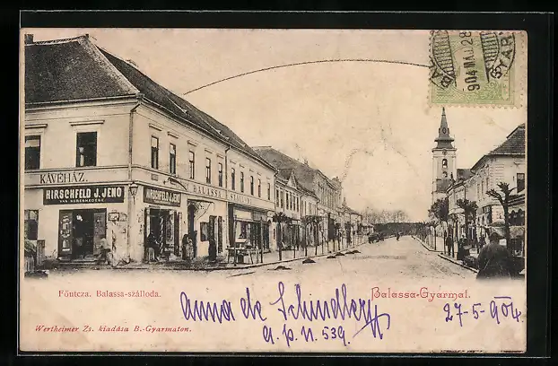 AK Balassa-Gyarmat, Föutcza, Balassa-szálloda, Kávéház Hirschfeld J. Jeno