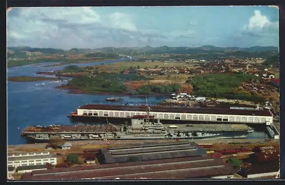 AK Balboa, View of the Harbour, Canal Zone with the U. S. Aircraft Carrier F. D. Roosevelt