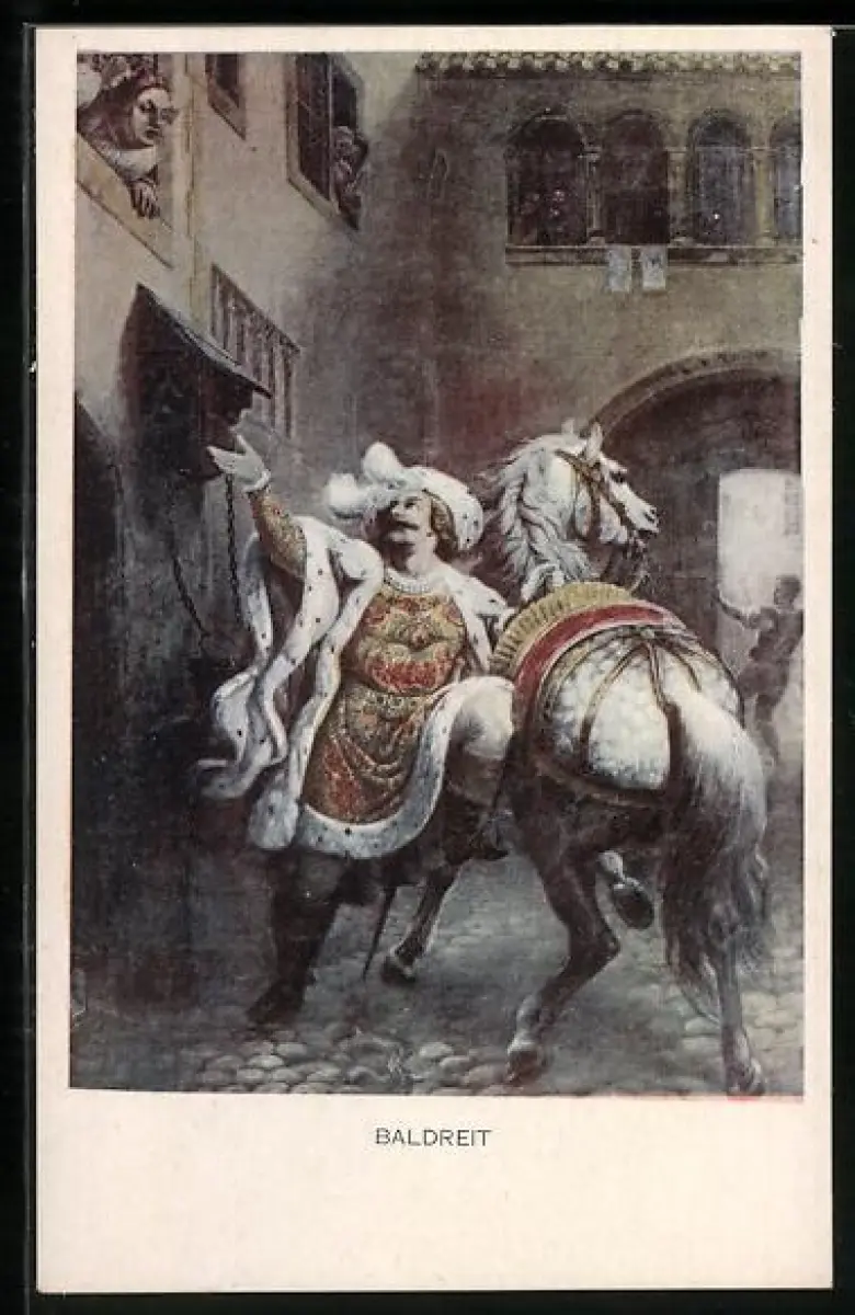 AK Baldreit, Edelmann mit Pferd spricht mit Dame im Fenster, Schwarzwaldsagen