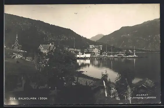AK Balholmen i. Sogn., Ortsansicht mit Uferpartie