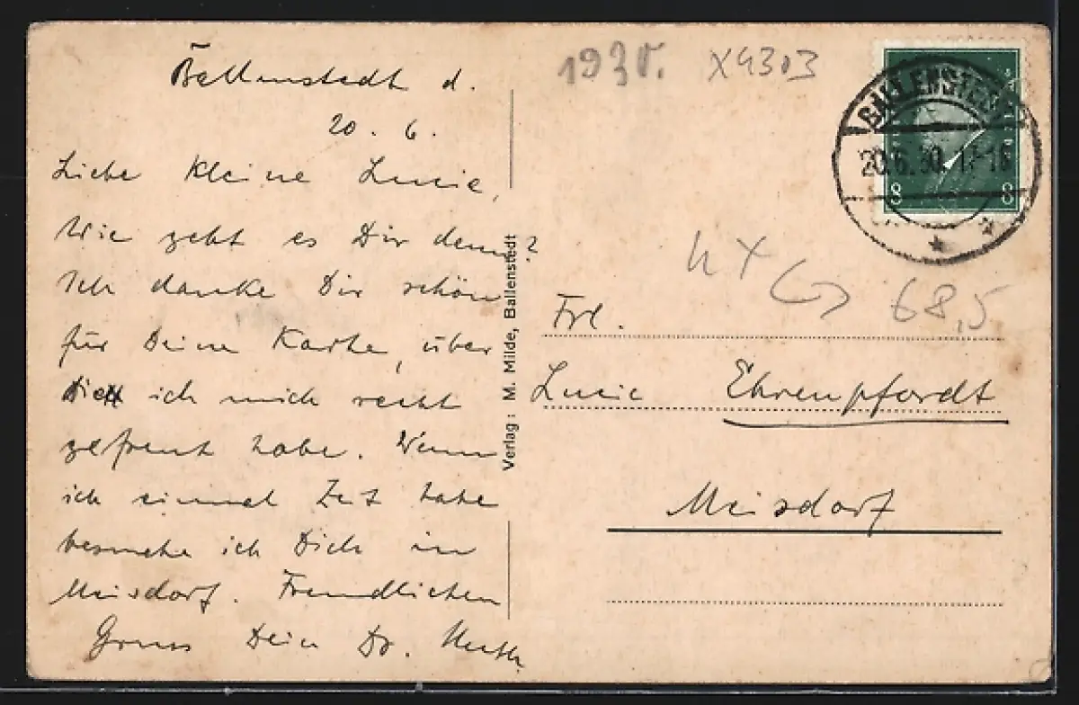 alte Ansichtskarte, gelaufen 1930, guter Zustand