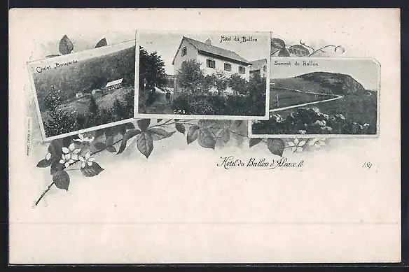 AK Ballon d`Alsace, Hôtel du Ballon et Chalet Bonmont avec vue sur le sommet du Ballon